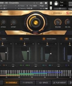 Master Presets: Includes combo ensemble preset and four master section presets for Trumpets, Tenor Trombones, French Horns, and Tubas, each offering a variety of articulations and performance options.
