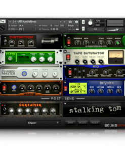The interface is rounded-out by our modular FX rack panel, with 18 different DSP effect modules that you can assign in any of 10 available slots, in any order that you wish. You’ll find classic phaser, flanger, delay, distortion, amp and cab simulators, compressors, EQ, rotator and so much more. The Reverb effect includes our favorite convolution reverb impulse responses, including 99 different rooms, halls, chambers and outdoor environments, plus another 40 custom FX impulses to radically transform the sound and open up whole new worlds of musical possibility. We’ve added a great bank of FX rack chain factory presets to get you started!