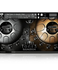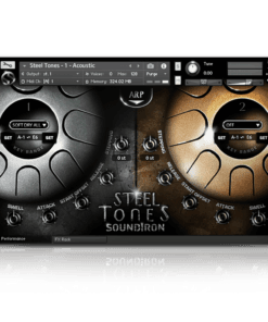 Steel Tones is a comprehensive metallic tuned percussion instrument library for Kontakt, capturing the unique sound of a Hapi Drum. This instrument, built by Hapi Tones, measures 12 inches wide and 8 inches deep (30cm x 20cm) and belongs to the family of steel tongue drums. The Hapi Drum features 8 tongues tuned to a D-major pentatonic scale, offering a strong fundamental tone with complex overtones and harmonics, and a long, mellow sustain.