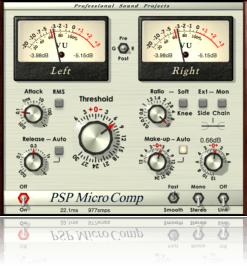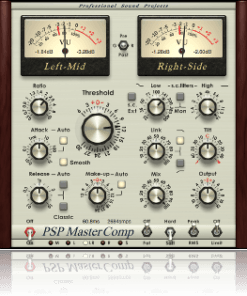 PSP MasterComp is a high fidelity stereo dynamics processor designed to excel in mastering environments. With its double-precision 64-bit floating point and double-sampled FAT (Frequency Authentication Technique) processing, it provides unrivaled transparency and clarity even under extreme compression settings and at high sample rates.