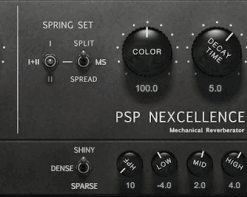 PSP Nexcellence is a rich-sounding, spring emulation plugin modeled after vintage “Necklace-type” reverb units. This plugin provides users with two different spring set processors, allowing you to utilize one or both processing engines simultaneously. The algorithm improves on the original hardware design by offering an enhanced set of parameters that let you control inherent aspects of the spring reverb, creating a more versatile and powerful sound.