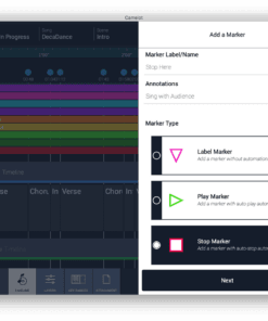 - Multitrack Audio Player, Timeline & Automations: Attach Audio backing tracks, add auto-play and auto-stop markers, and automate Scene switching on the Camelot Timeline & Automation Area.