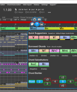 - Libraries: Access a vast library of chords, scales, and progressions, all easily searchable and expandable. The docked browsers make it easy to preview, sort, and organize your musical building blocks, including MIDI files and CC envelopes.