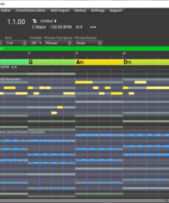 - Phrase Generators: Create anything from simple monophonic melodies to complex polyphonic patterns with rhythm and phrase generators. Effortlessly modify phrases using non-destructive variations and rhythm manipulation tools.